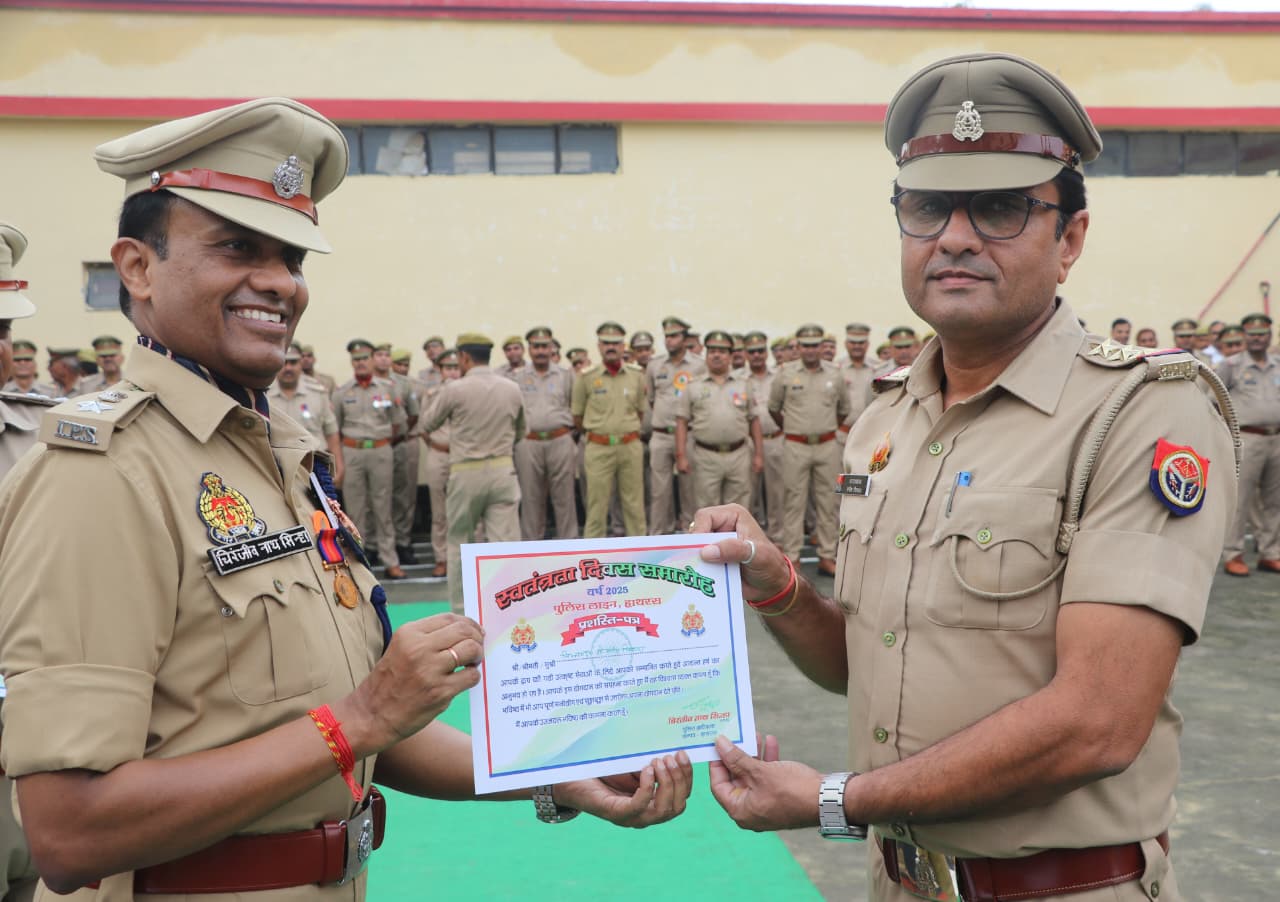 पुलिस अधीक्षक हाथरस द्वारा पुलिस महानिदेशक उ0प्र0 द्वारा प्रदत्त पदक व प्रशंसा चिह्न प्रदान करने के साथ सराहनीय कार्य करने वाले अधिकारी/कर्मचारियों को प्रशस्ति पत्र देकर किया गया सम्मानित ।