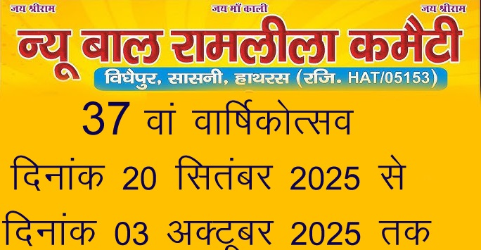 सासनी।गांव विघैपुर में न्यू बाल रामलीला कमेटी का वार्षिकोत्सव दिनांक बीस सितंबर दिन शनिवार से दिनांक तीन अक्टूबर दिन शुक्रवार तक आयोजित किया जाएगा।